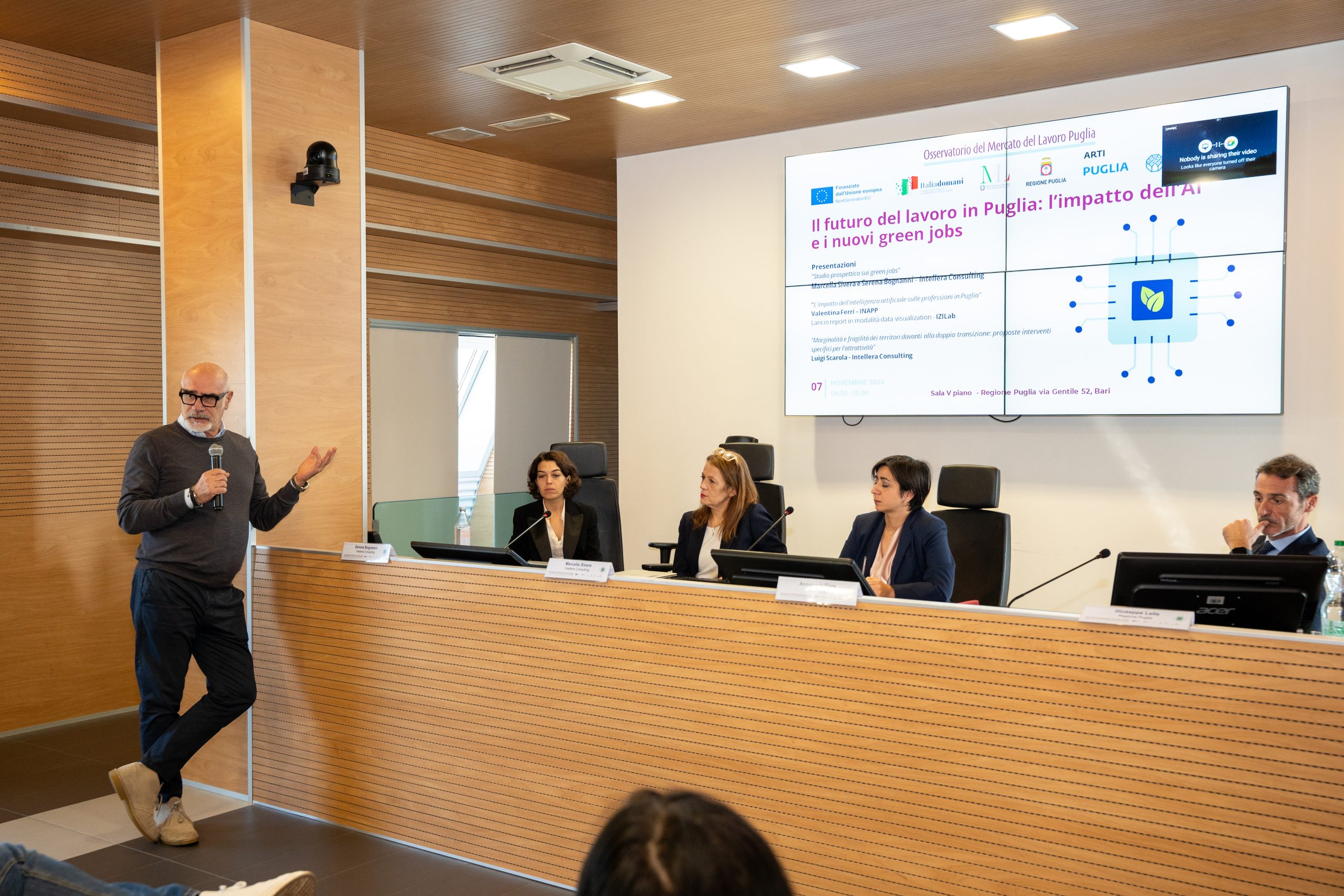 Nel corso dell’iniziativa, sono intervenuti: il Dirigente a Sezione Politiche e Mercato del Lavoro della Regione Puglia, Marcella Sivera, Serena Bognanni e Luigi Scarola di Intellera Consulting, Valentina Ferri di INAPP, Paola Amendola e Martino Bellincampi di IZILab che hanno presentato, in modalità visual analytics, il rapporto sull’AI.